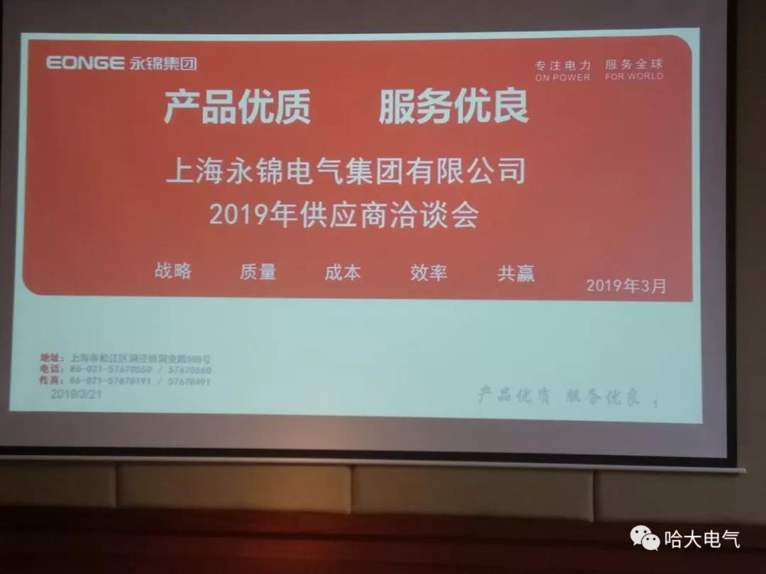 上海永錦電氣集團有限公司2019年供應(yīng)商洽談會的主題是:戰(zhàn)略、質(zhì)量、成本、效率、共贏。哈大電氣定將秉承“合作共贏”的理念,牢記客戶囑托。