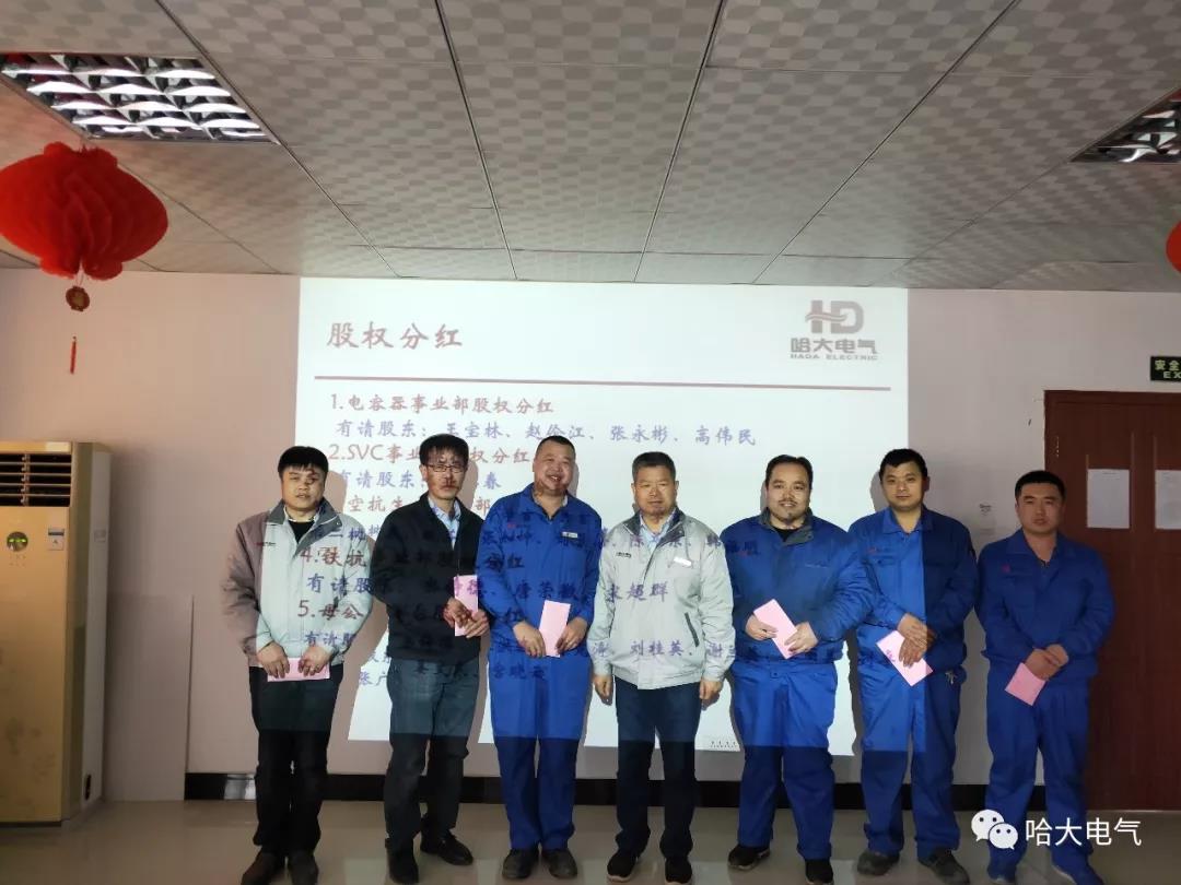 哈大電氣股權激勵的核心宗旨是:共建、共享、共贏!上圖為母公司平臺10位股東領取2018年度股權分紅。